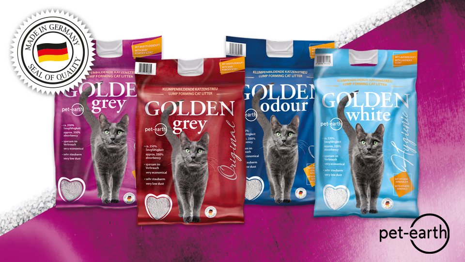 Die pet-earth GmbH wurde 2003 gegründet und begann zunächst mit dem Vertrieb importierter, vorverpackter Katzenstreu. Schon bald startete das Unternehmen die eigene Produktion in Deutschland. Seitdem steht die Marke GOLDEN für Premium-Katzenstreu, die ausschließlich aus natürlich gewonnenen Rohstoffen hergestellt wird.