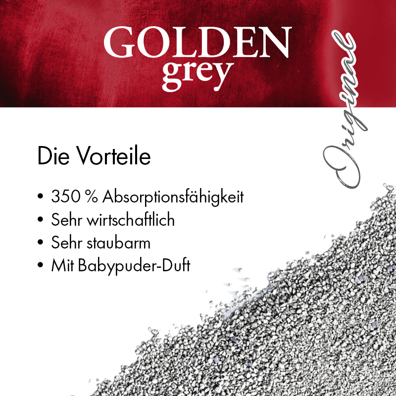 Unsere Katzenstreu GOLDEN Grey Master, GOLDEN Grey Original und GOLDEN Odour Natural wird aus hochwertigen Rohstoffen und natürlichem Natriumbentonit hergestellt. Für die hygienische Katzenstreu GOLDEN White verwenden wir mit Soda aktiviertes Kalziumbentonit. Auf den Einsatz von Klebstoffen, Gelbindern oder synthetischen Staubbindemitteln verzichten wir bewusst.